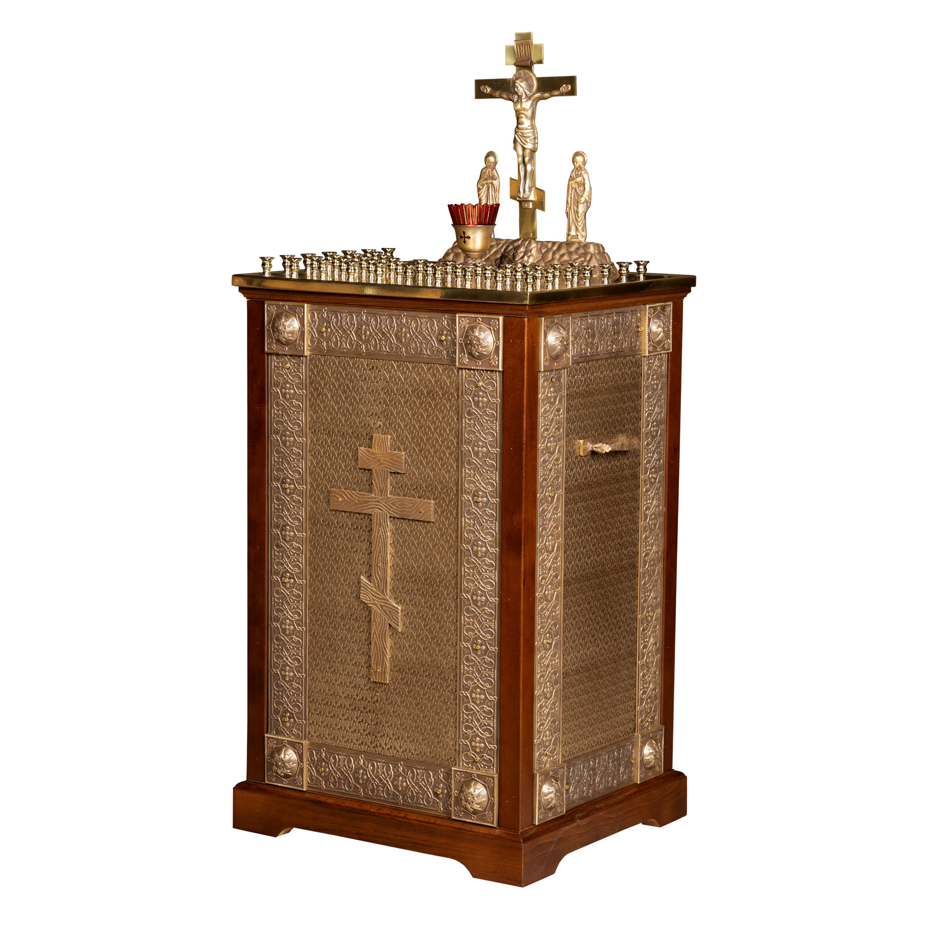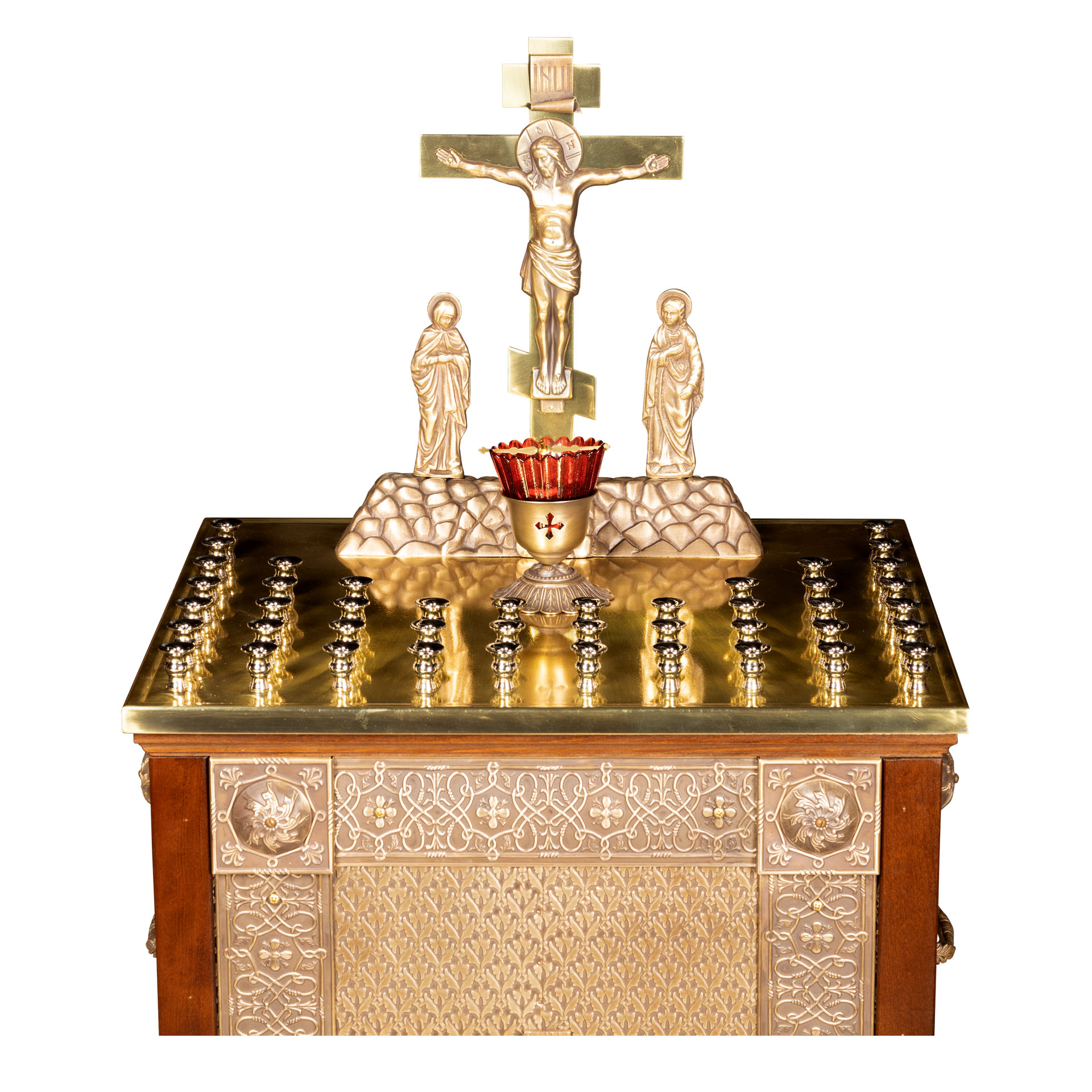 Стол панихидный №26 на 44 свечи на деревянном каркасе патинирование