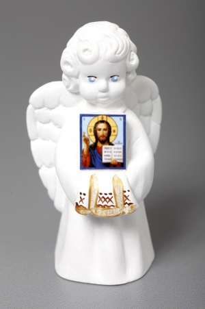 Ангел Хранитель скульптура гипсовая с иконой Спаситель