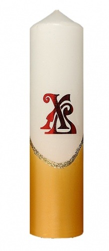 Свеча столб большой двухцветный с глиттером