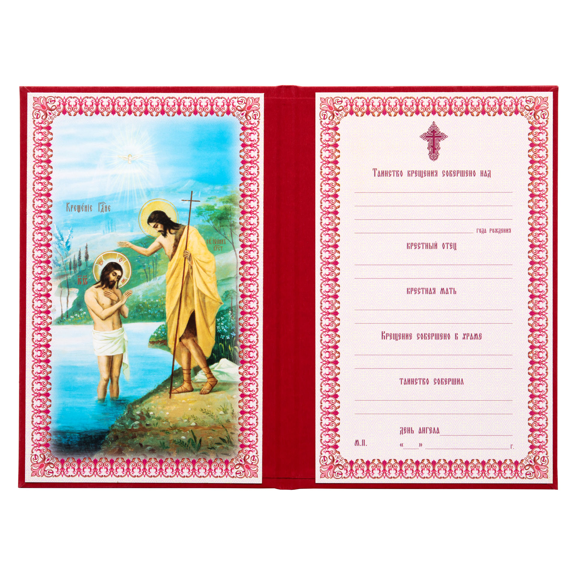 Свидетельство о крещении в твердой обложке красный