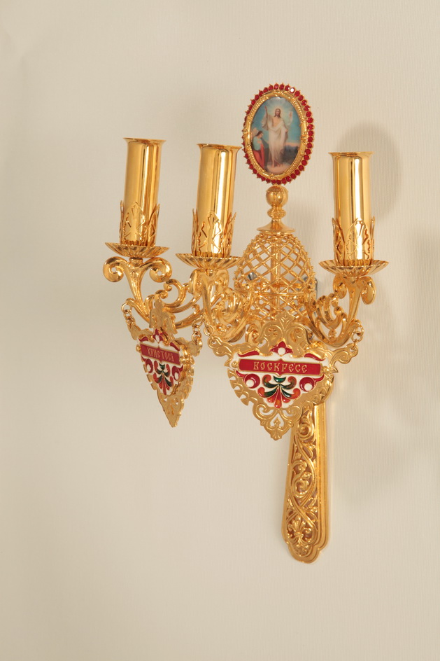 Трехсвечник пасхальный на яйце №2 золочение эмаль