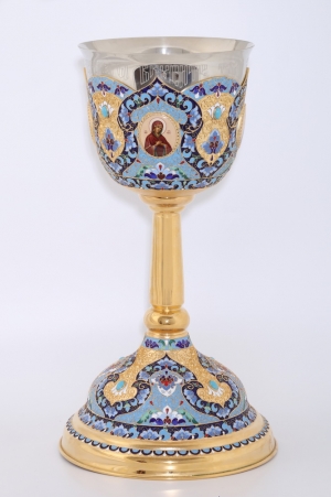 Потир 1.0л 4-литьевых лика, филигрань, эмаль / песочные часы / золочение / мельхиоровый стакан