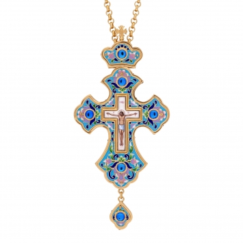 Крест наперсный №1417 / Фианиты финифть / золочение