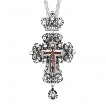 Крест наперсный №199 / Фианиты деколь / серебрение