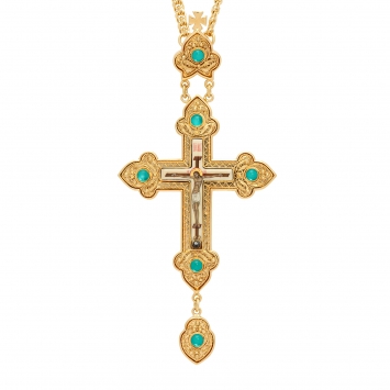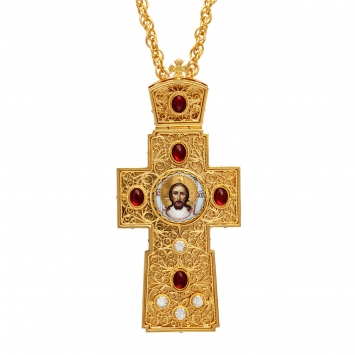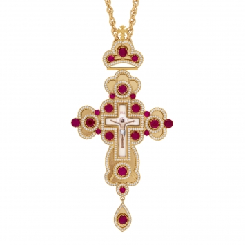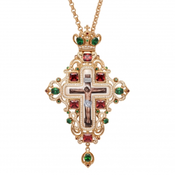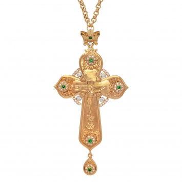 Крест архиерейский №1415 / Фианиты деколь, эмаль / золочение