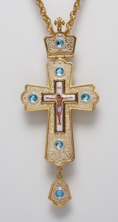 Крест наперсный №201 / Фианиты эмаль / золочение
