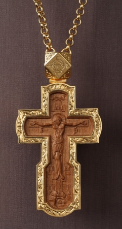 Крест наперсный №62 / золочение / серебро деревянная вставка (УИН)