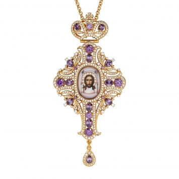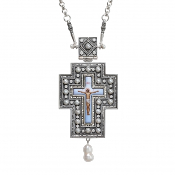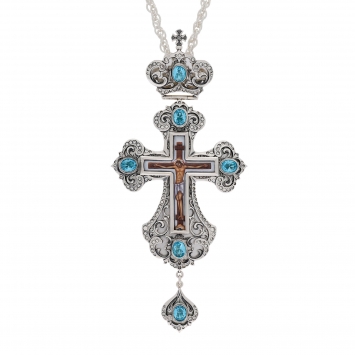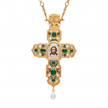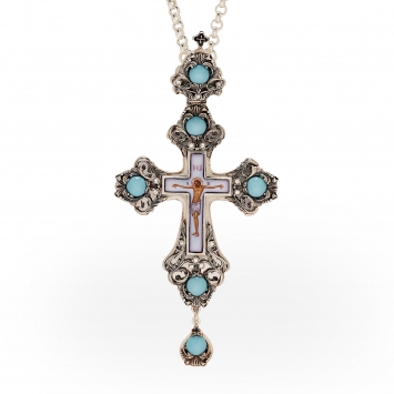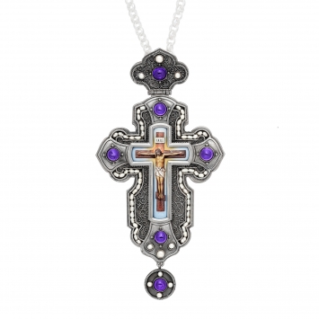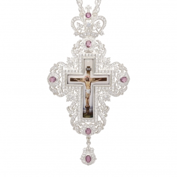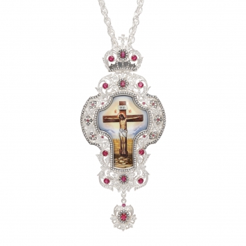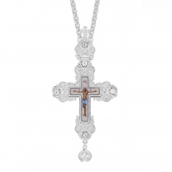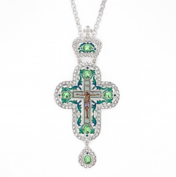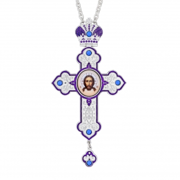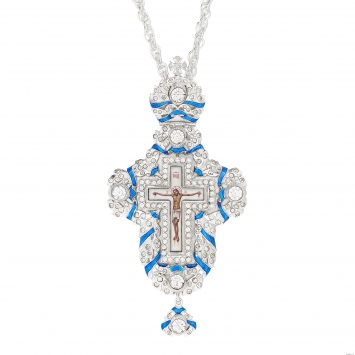 Крест архиерейский №1411 / Фианиты серебро финифть (УИН)