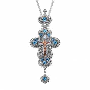Крест наперсный №7 / Фианиты деколь, эмаль, / серебрение