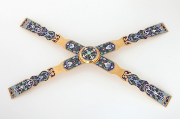 Крест архиерейский филигрань №0001 двойной рант финифть / золочение, серебрение