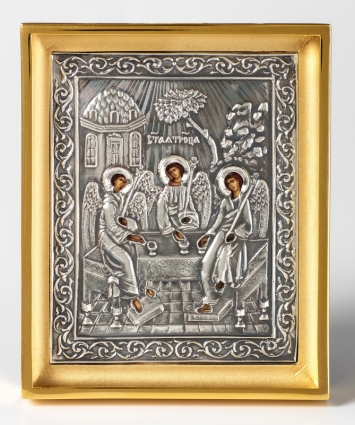 Икона настольная №128 с г / пластической вставкой / фото / золочение, серебрение / Троица