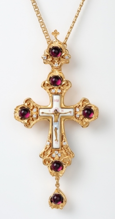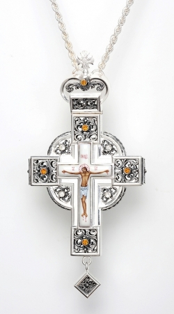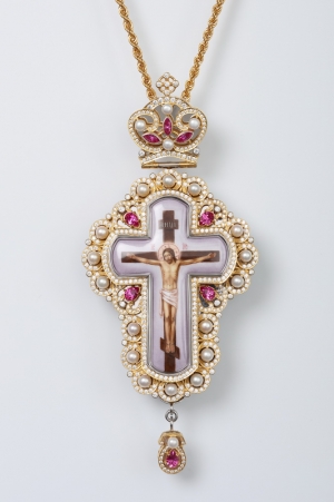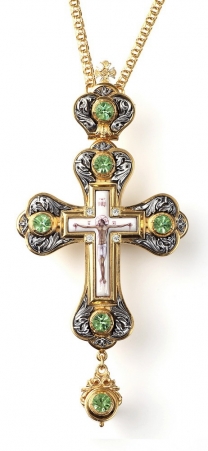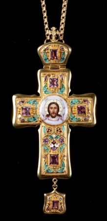 Крест архиерейский филигрань, эмаль, финифть / круглая / золочение / серебро (УИН)
