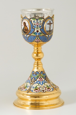 Потир 1.4л 4-финифти, филигрань, эмаль, роспись / золочение / серебряный стакан (УИН)