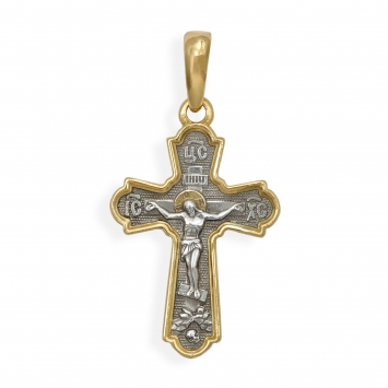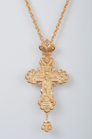 Крест наперсный №49 / золочение / серебро литьевое распятие, эмаль (УИН)