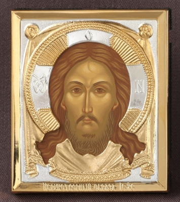 Икона штампованная 6*7 / темпера / золочение / серебро Спас Нерукотворный (УИН)