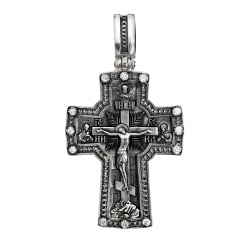 Крест мощевик большой ручная гравировка, литьевые лики №3 серебро (УИН)