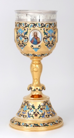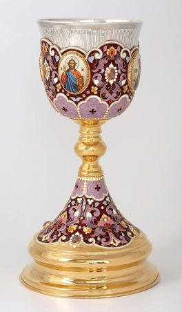 Потир 0.5л 4-деколи, филигрань, эмаль / золочение / серебряный стакан (УИН)
