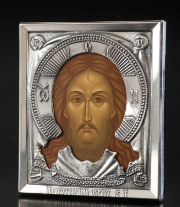 Икона штампованная 6*7 / темпера / серебро Спас Нерукотворный (УИН)