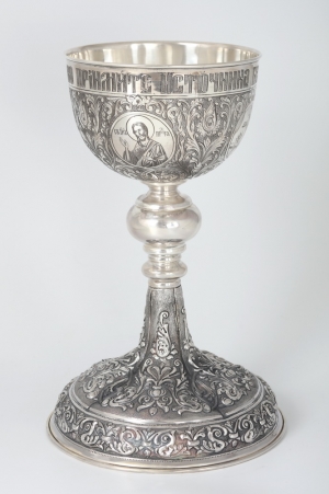 Потир 0.75л ручная гравировка, чеканка "№4" серебро (УИН)