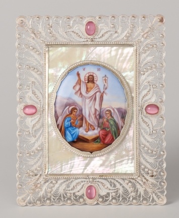 Икона именная №12 финифть, филигрань серебро Воскресение Христово (УИН)