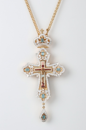 Крест наперсный №222 / Фианиты / золочение / серебро (УИН)