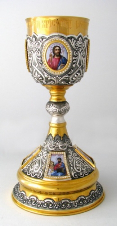 Потир 1.0л 4-литьевых лика, филигрань, эмаль "№3" / золочение / серебряный стакан (УИН)
