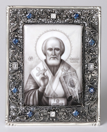 Икона именная №17 финифть, филигрань серебро Николай Чудотворец (УИН)