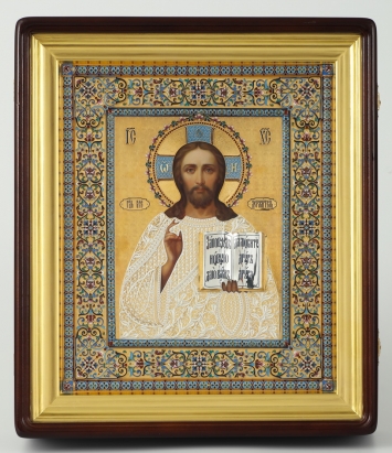 Икона живописная в рубашке 40*50 серебро / киот / Господь Вседержитель (УИН)