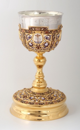 Потир 1.0л гальванопластика, филигрань, эмаль / золочение / серебряный стакан (УИН)