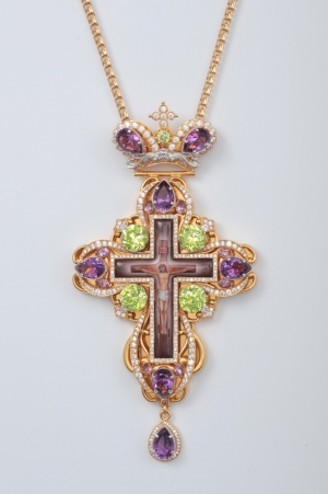 Крест архиерейский №52 / золочение / серебрo литьевое распятие, финифть, эмаль (УИН)