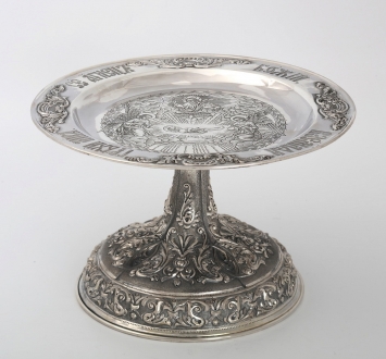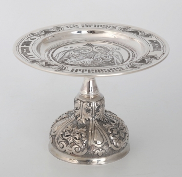 Дискос с поддискосником ручная гравировка, чеканка / ф240мм-потир 1,0л"№4" / серебро (УИН)