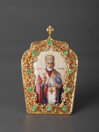 Икона настольная №12 серебро финифть / золочение / Николай Чудотворец (УИН)