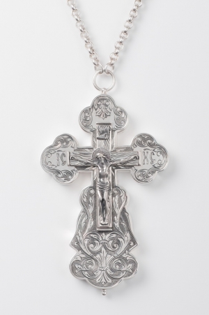 Крест напрестольный водосвятный на ручке литье, гравировка серебро (УИН)