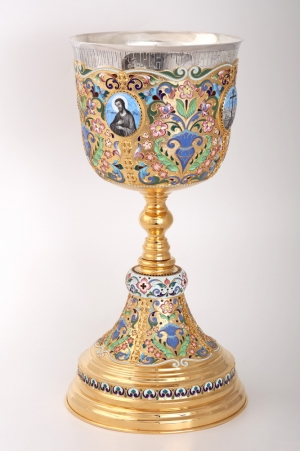 Потир 1.0л 8-литьевых лика, чеканка, филигрань, эмаль серебро (УИН)
