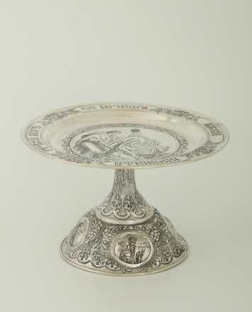 Дискос с поддискосником ручная гравировка, чеканка / ф240мм-потир 1,0л"колос" / серебро (УИН)