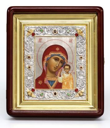 Икона живописная в гальванопластической ризе 18*24 серебро / киот / Казанская БМ (УИН)