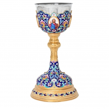 Потир 1.0л 4-финифти, филигрань, эмаль, роспись / песочные часы / золочение / серебряный стакан (УИН)