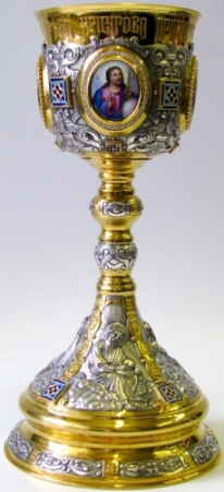 Потир 1.0л ручная гравировка с 8-ю ликами / золочение / серебро (УИН)