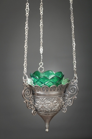 Лампада напрестольная большая чеканка / штампованный поддон / серебро (УИН)