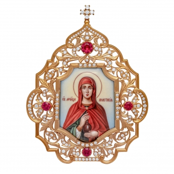 Икона настольная №152 / Фианиты серебро деколь / золочение / Анастасия (УИН)