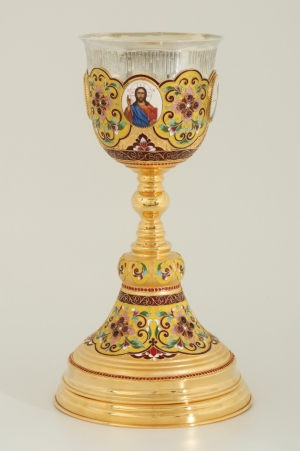 Потир 1.5л 4-финифти, филигрань, эмаль / поддон конус 2,0л / золочение / серебряный стакан (УИН)