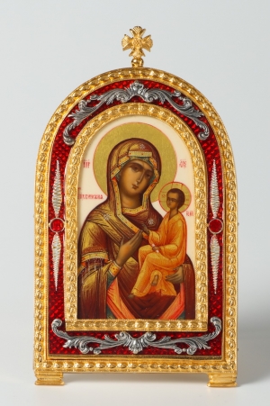 Икона настольная №3 серебро живопись, эмаль / золочение / Тихвинская БМ (УИН)