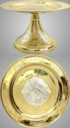 Дискос с поддискосником ручная гравировка / ф240мм - к потиру 1,0л / золочение / серебро (УИН)