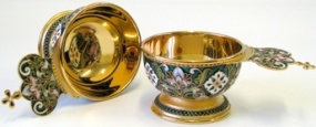 Ковш для теплоты филигрань, эмаль, роспись №2 / золочение / серебро (УИН)