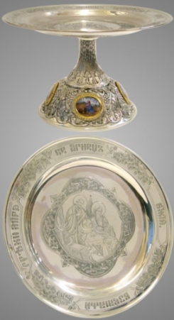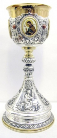 Потир 0.8л ручная гравировка с 4мя-ликами, чеканка серебро (УИН)