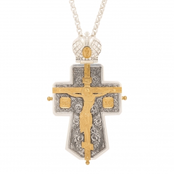 Крест наперсный №1010 мощевик гравировка / золочение / серебро (УИН)