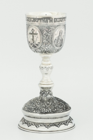 Потир 1.5л ручная гравировка с 4мя-ликами, чеканка, серебро (УИН)
