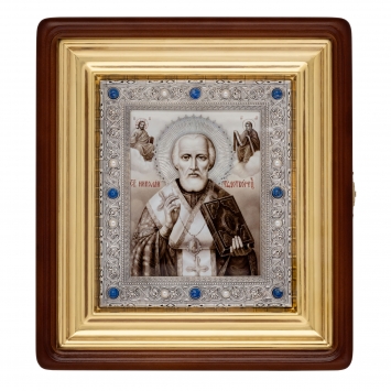 Икона в ризе 19*16,5 деколь гальванопластика / киот / серебро Николай Чудотворец (УИН)
