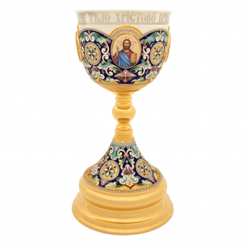 Потир 0.75л 4-финифти, филигрань / золочение / серебряный стакан (УИН)