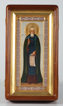 Икона живописная в гальванопластической ризе 20*30 / киот / эмаль серебро Сергий Радонежский (ростовой) (УИН)